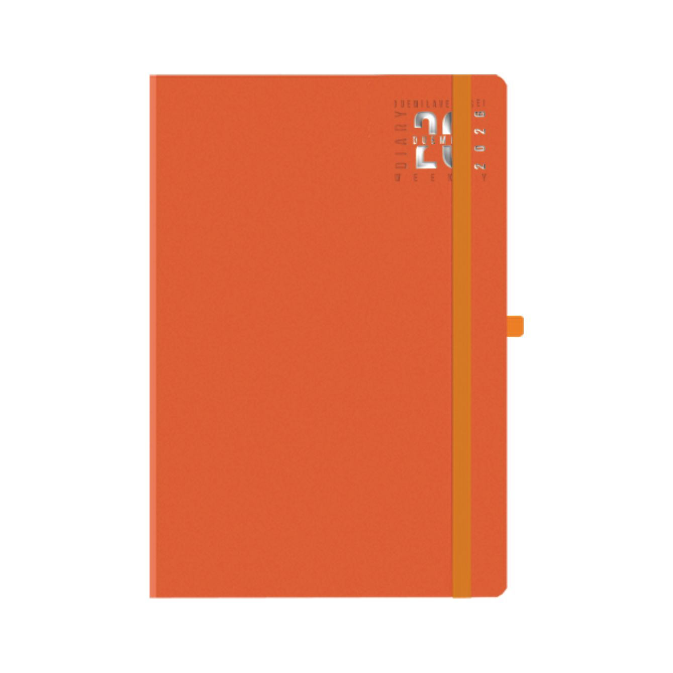 Agenda “Dynamic” settimanale con elastico. 128 pag. Materiale: Matra. Interno stampa 2 colori. Carta bianca. Multilingue. Cartina geografica, rubrica telefonica. Colori: blu, rosso, nero, verde, royal, arancio. Dimensioni cm. 17×24 Imballo: 20xcolore