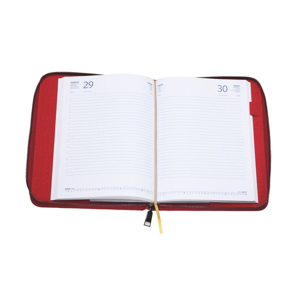 Agenda borsello in materiale termovirante.324 pag. Vano porta penna. Interno mobile giornaliero (17×24). Stampa 2 colori. Multilingue. Sabato e domenica abbinati. Rubrica telefonica, dati personali. Carta bianca. Colori: rosso, blu, grigio, nero. Confezione in astuccio. Dimensioni cm19x26 Imballo: 30xcolore