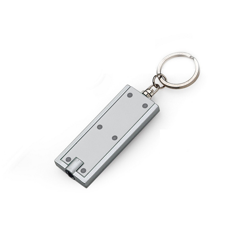P/chiavi rettangolare con led in plastica. Colori: blu, arancio, verde, nero. Confezione in polybag. Dimensioni cm 2,5×6