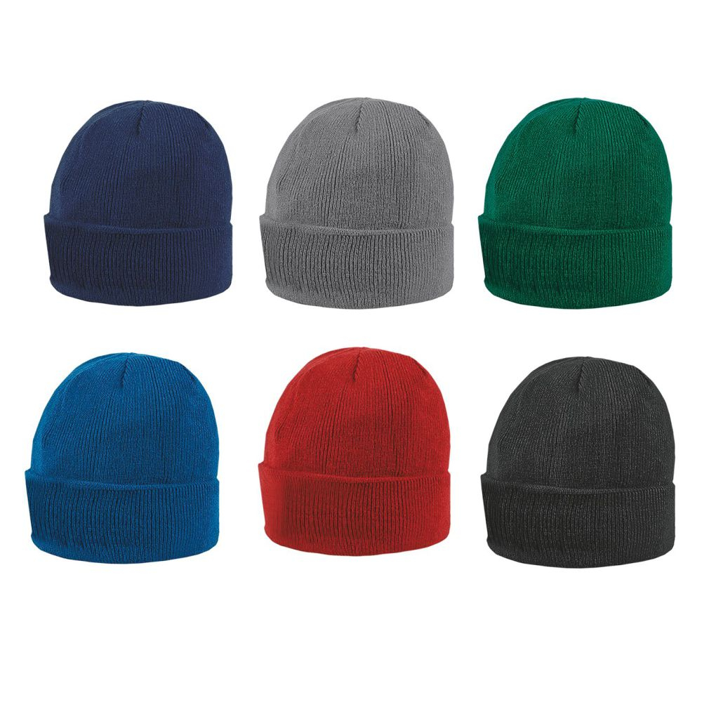 Cappello doppio strato con risvolto. Acrilico 100%. Senza etichetta personalizzabile. Colori: blu, grigio, nero, rosso, verde, royal. Imballo: 200xcolore