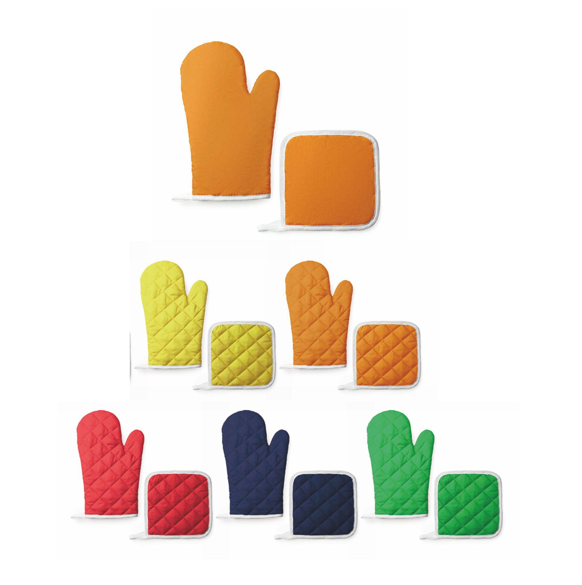 Guanto più presina in cotone e poliestere trapuntato. Dimensioni: cm 30,5×19. Imballo: 100pz.