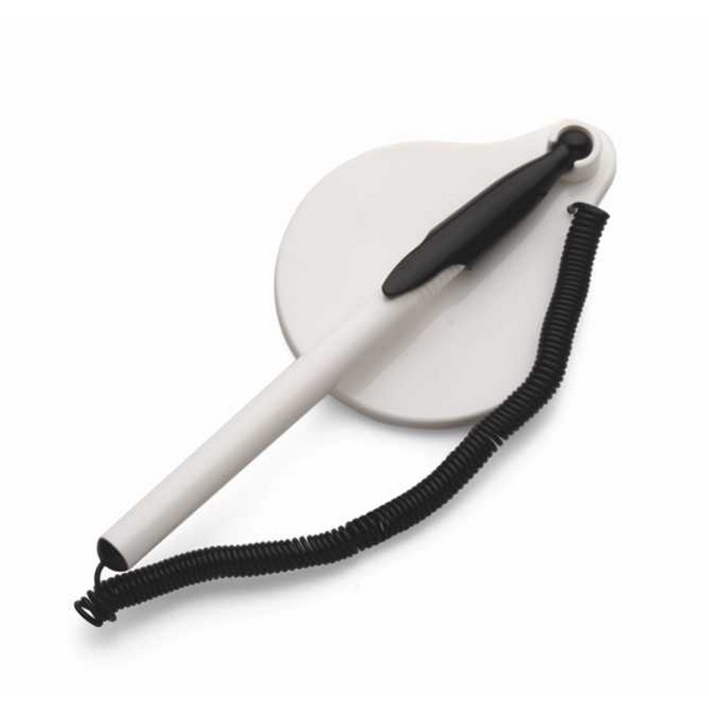 Stiloforo in plastica. Base con adesivo di cm. 8,5×6,5. Penna refill nero di cm. 13,5. Confezione in polybag. Colori: verde, nero, blu, rosso, bianco. Imballo: 500xcolore