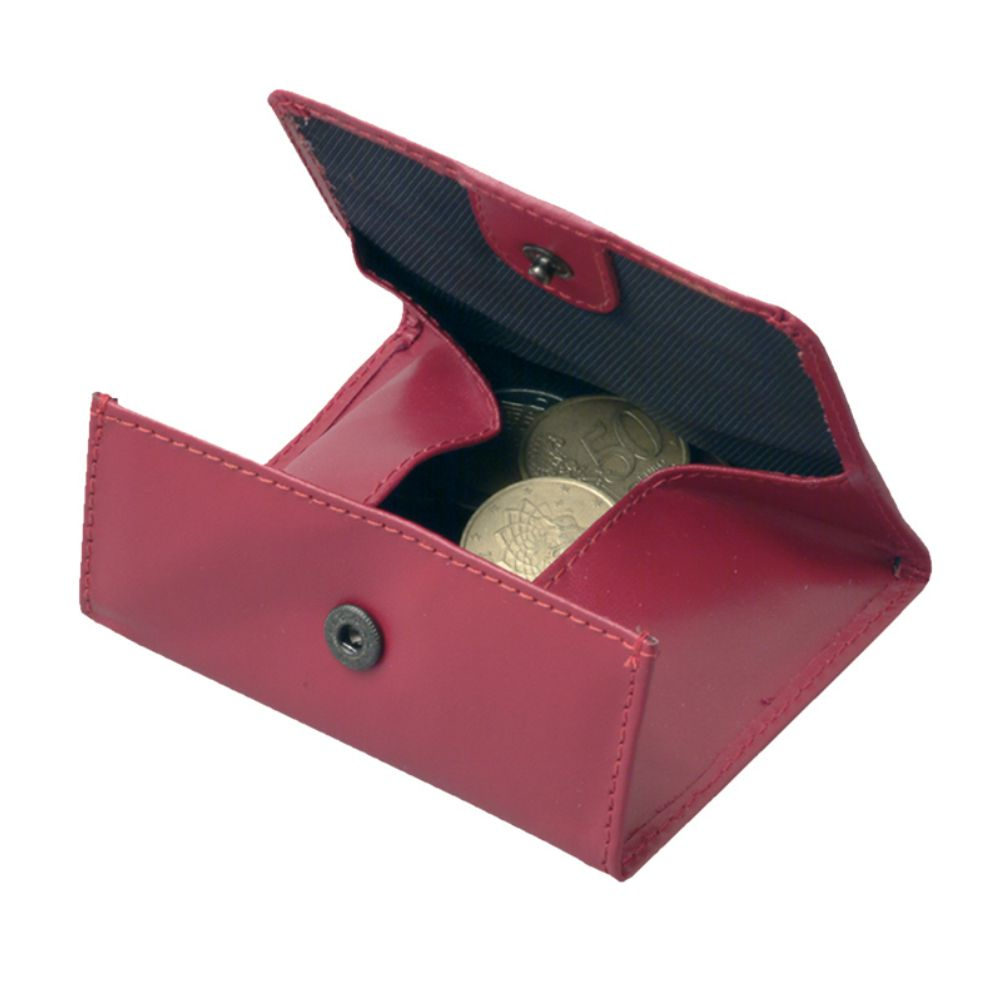 Porta monete in pelle. Apertura a fazzoletto. Chiusura con bottone. Colori nero, rosso. Confe-zione in astuccio. Dimensioni cm. 9×7 Imballo: 200xcolore