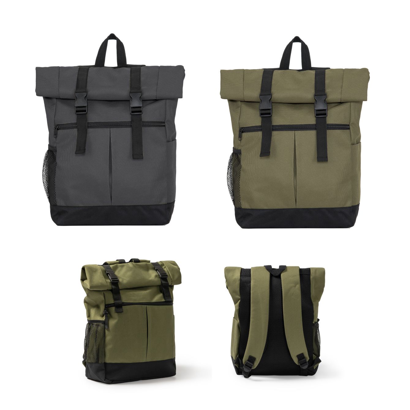 Zaino multifunzionale in poliestere 900D. Da 24 litri. Scomparto principale spazioso con cerniera e bottoni a scatto. Tasche laterali. Schienale e spallacci imbottiti. Dimensioni: 44x13x39