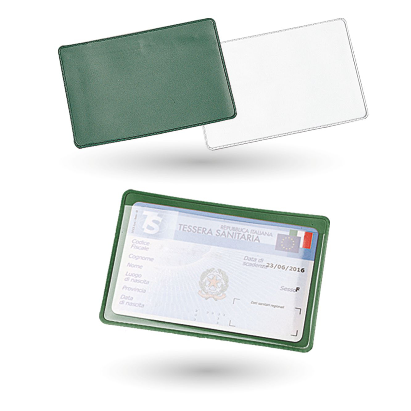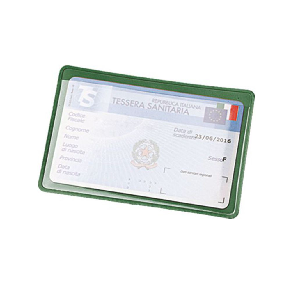 Porta tessera in pvc. Colori: verde, bianco. Dimensioni cm. 9,5×6