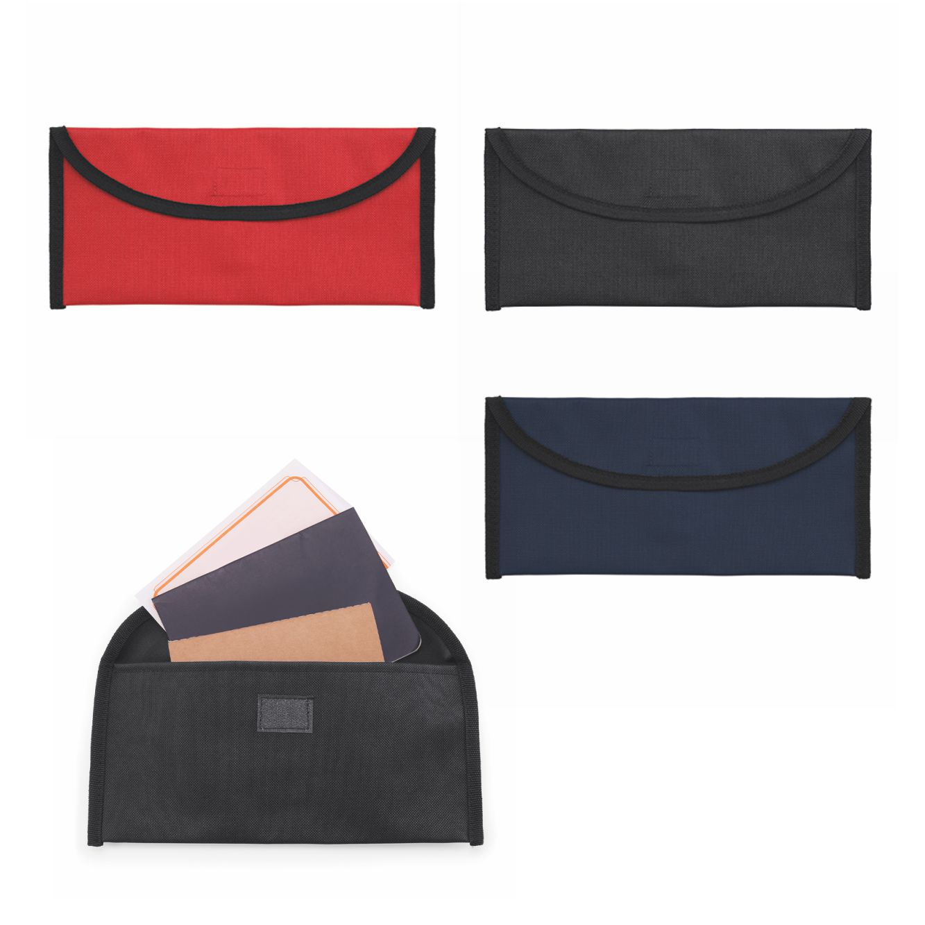 Portadocumenti in Poliestere 600D. Chiusura in velcro e passante per cintura. Dimensione: cm 27×13. Confezione: polybag