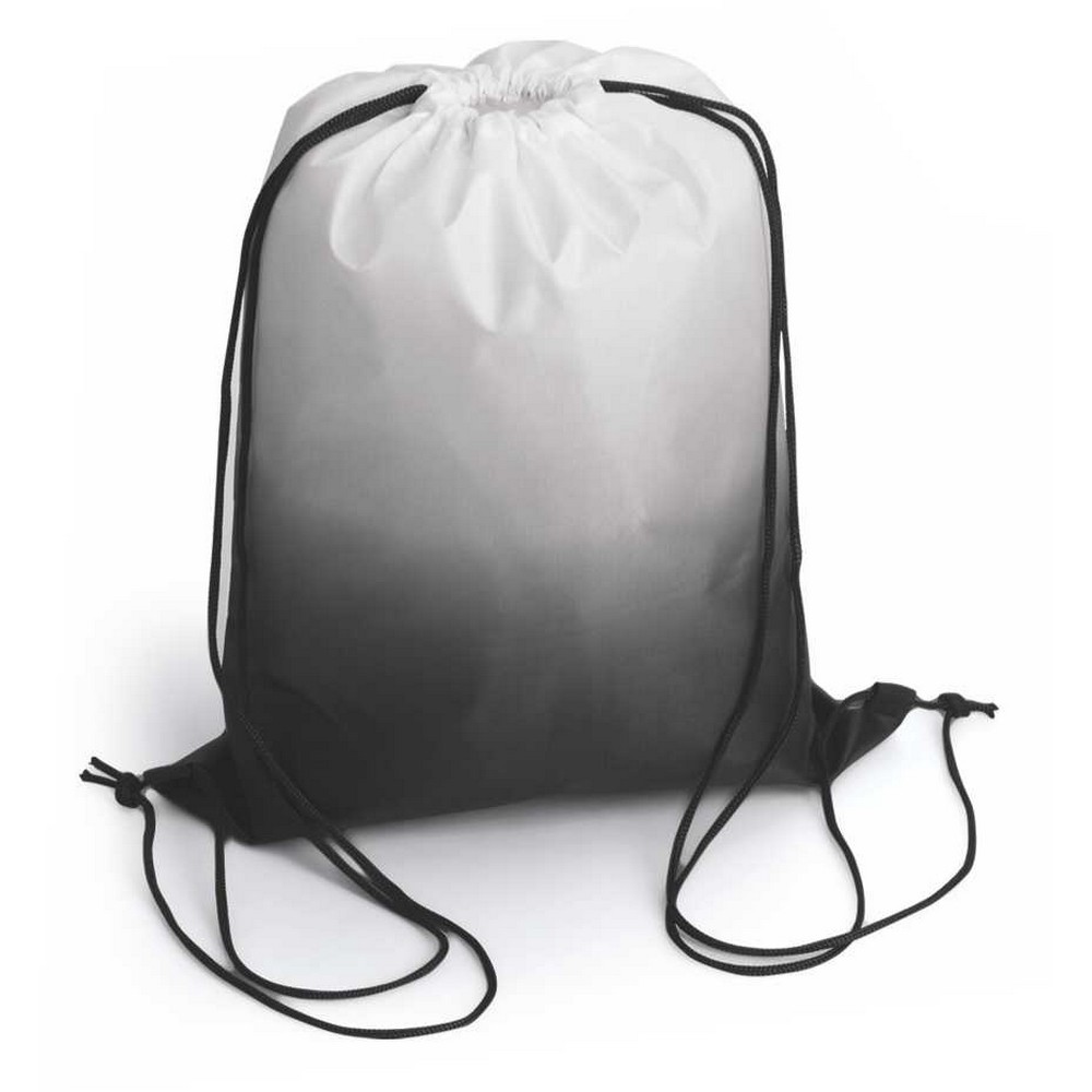 Zainetto in poliestere 210D. Chiusura con coulisse. Colori sfumati arancio, verde, sky, nero, ros-so. Dimensioni cm 33×42 Imballo: 400xcolore