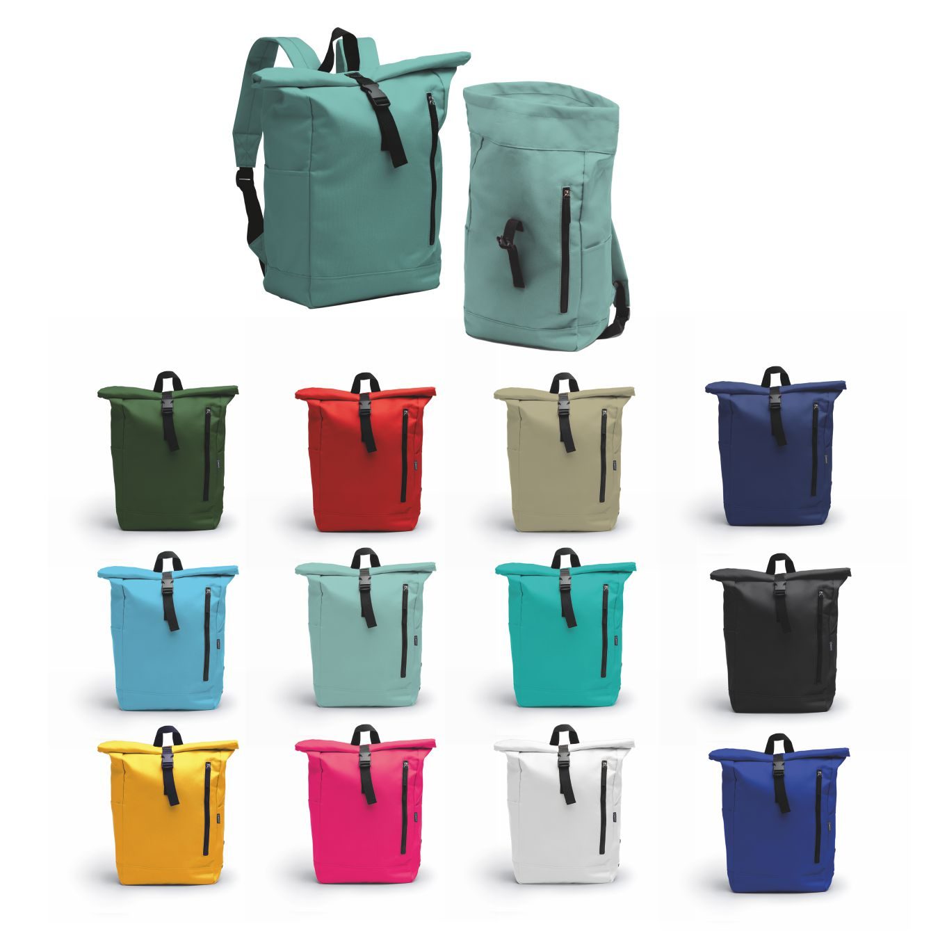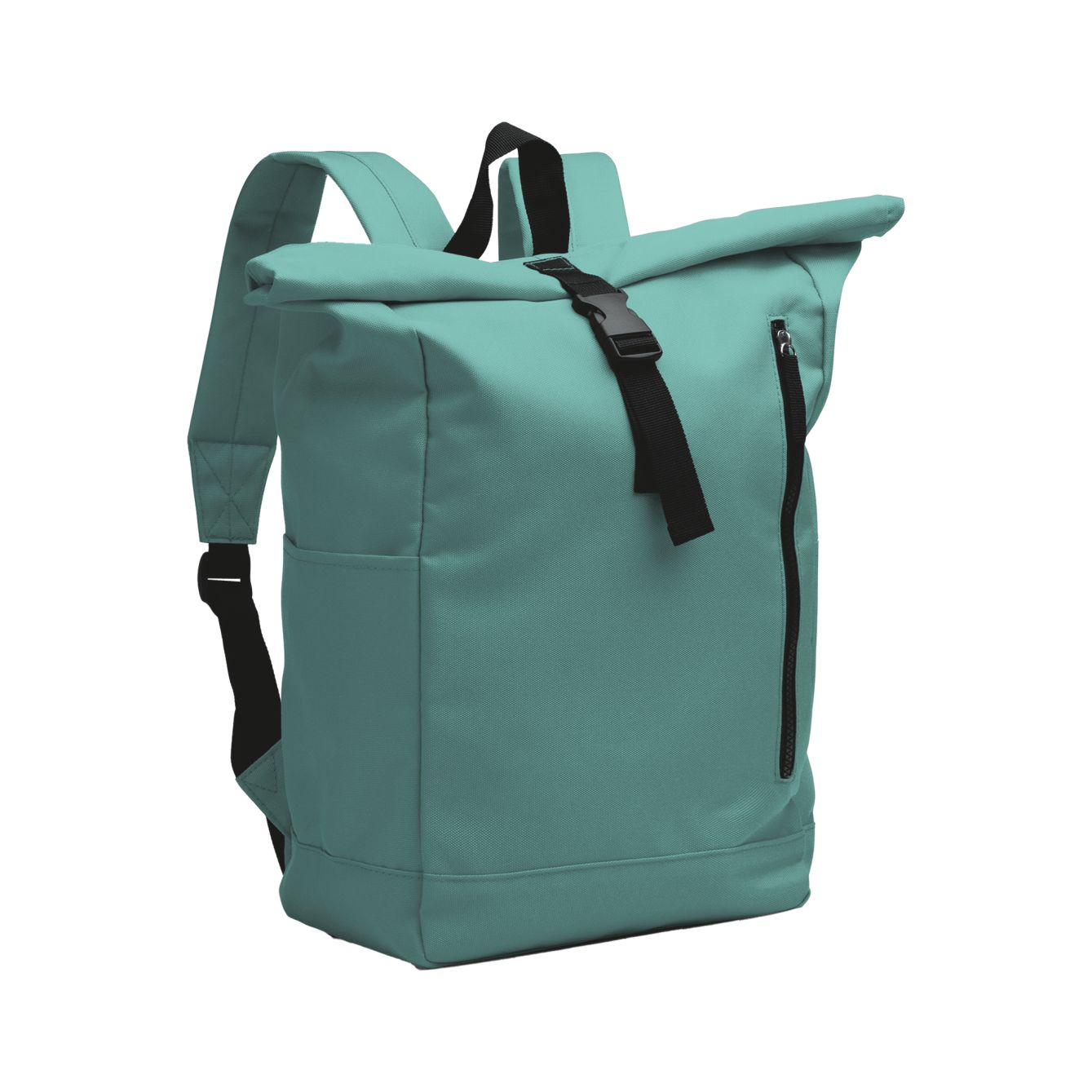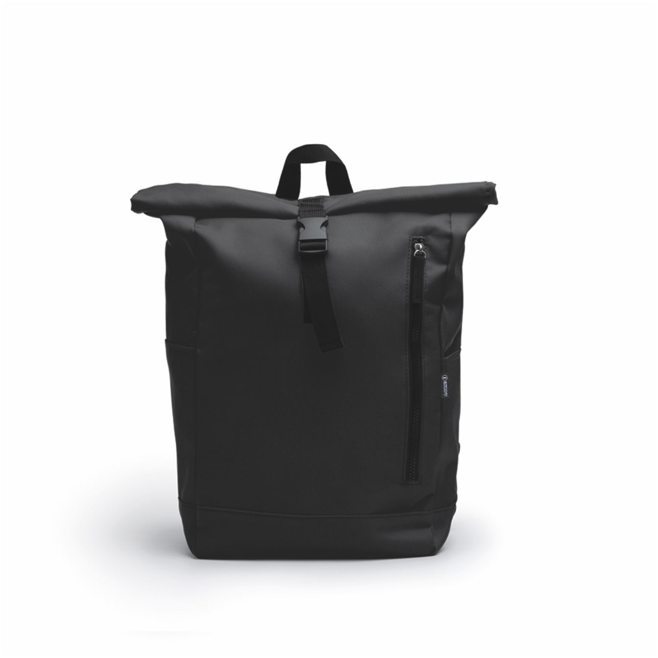 Zaino in poliestere RPET. Scomparto principale spazioso con apertura estensibile. Tasca esterna con cerniera e due tasche laterali. Spallacci e schienale imbottiti. Dimensioni: cm 26,5×52,5×16