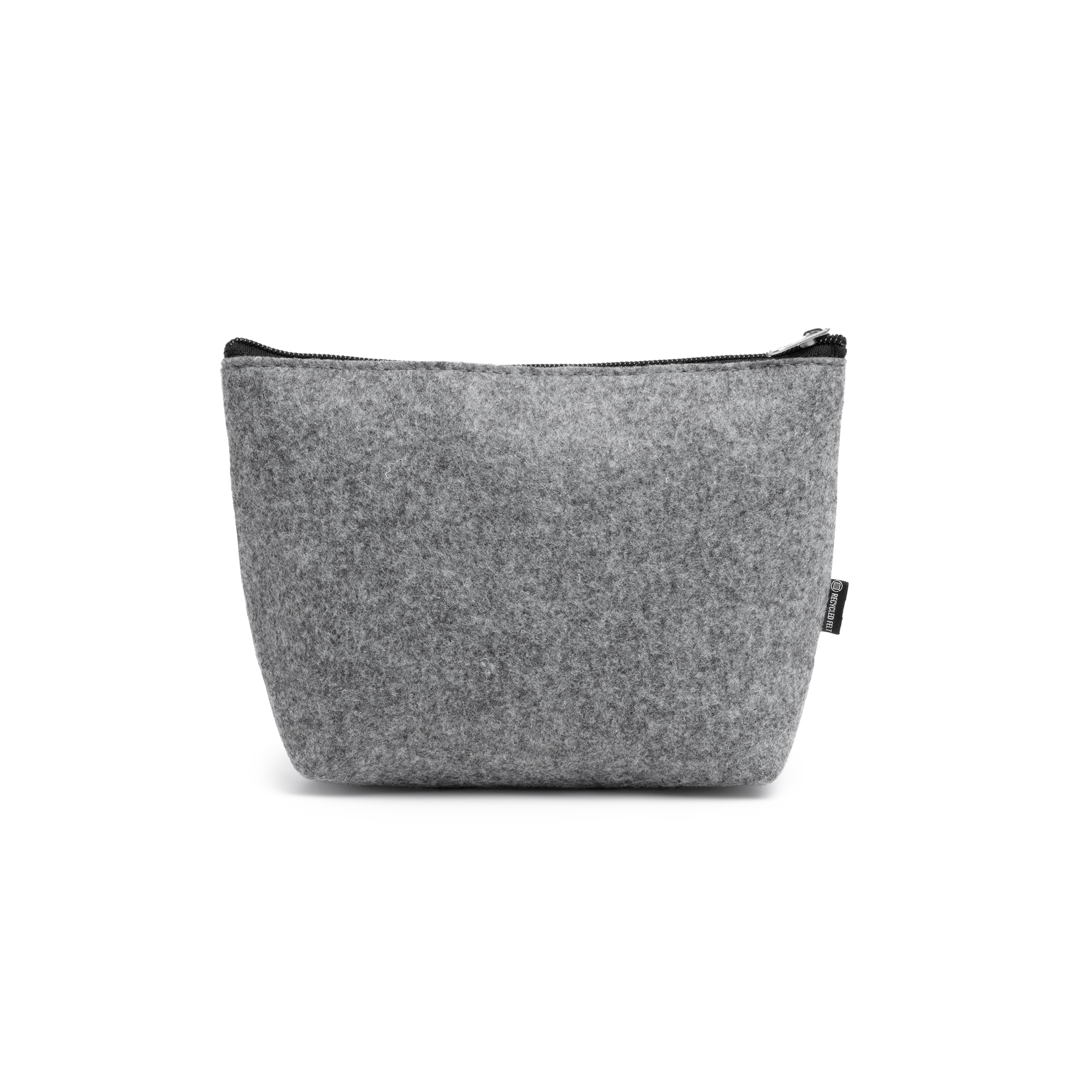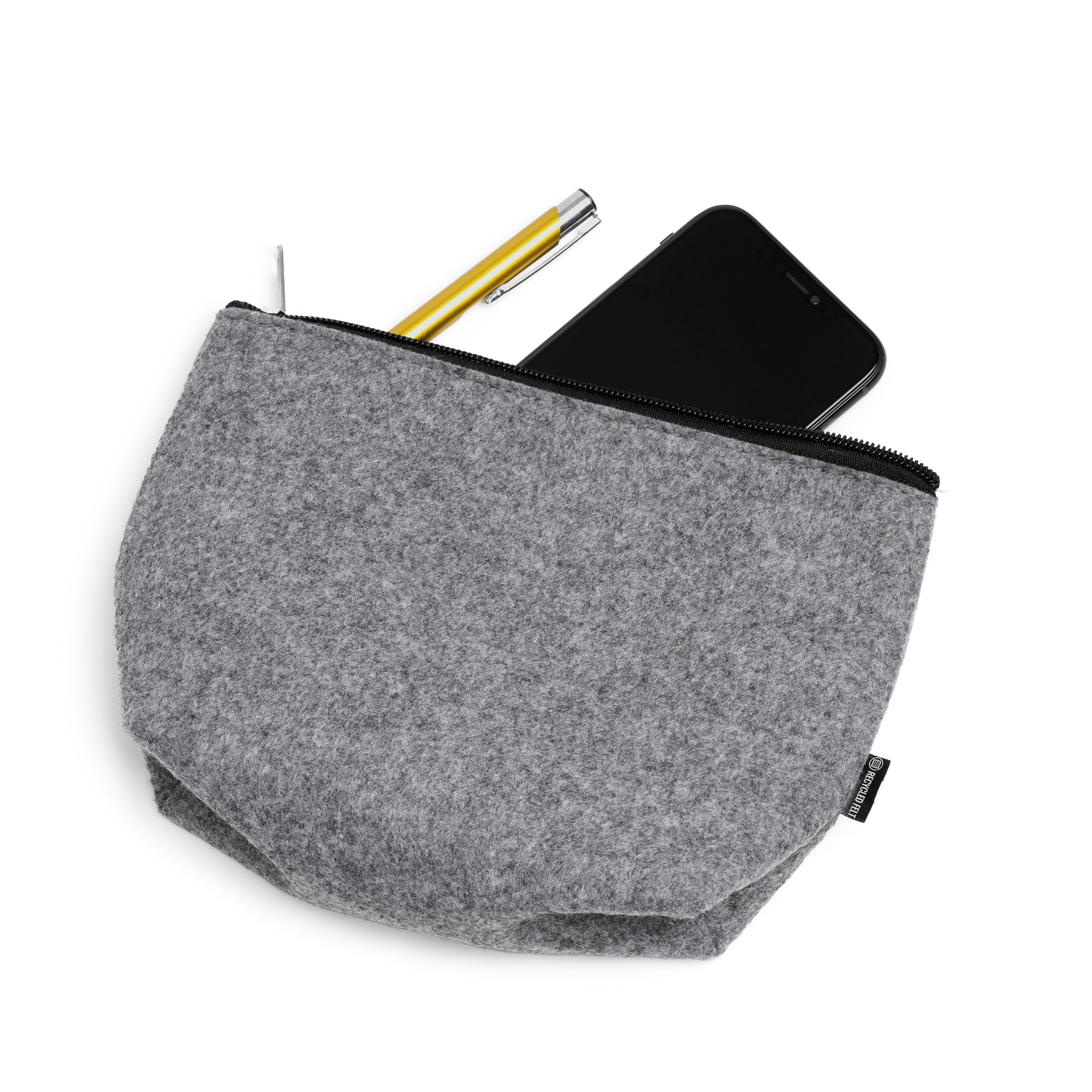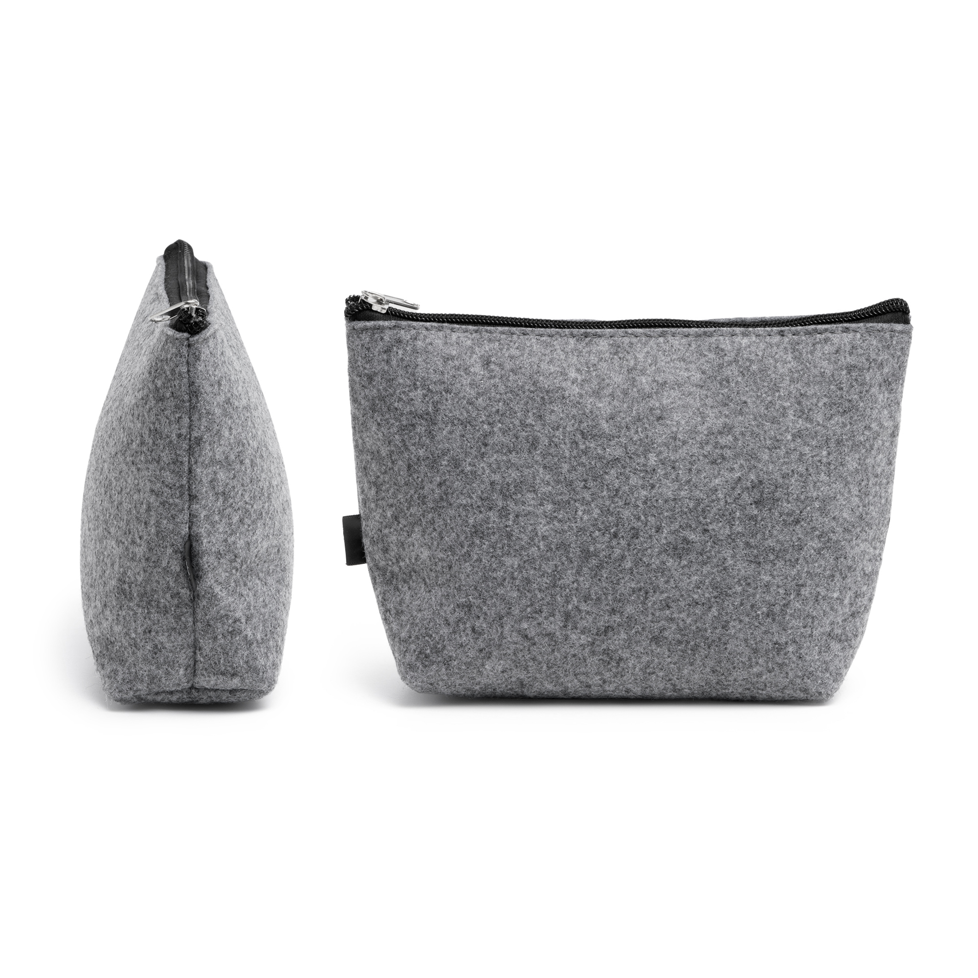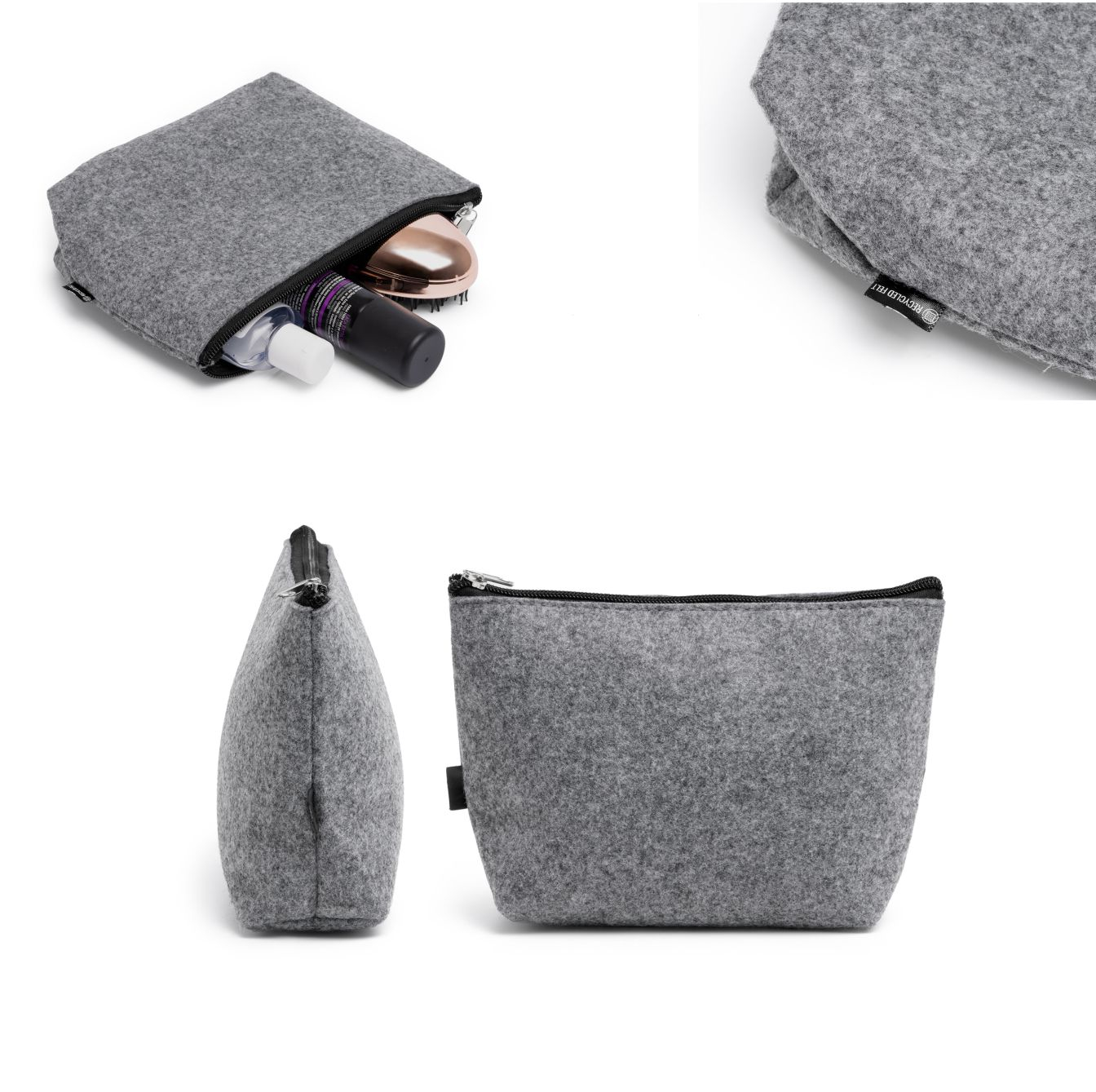 Borsa da toilette in feltro riciclato. Dimensioni: cm 22x14x6,5
