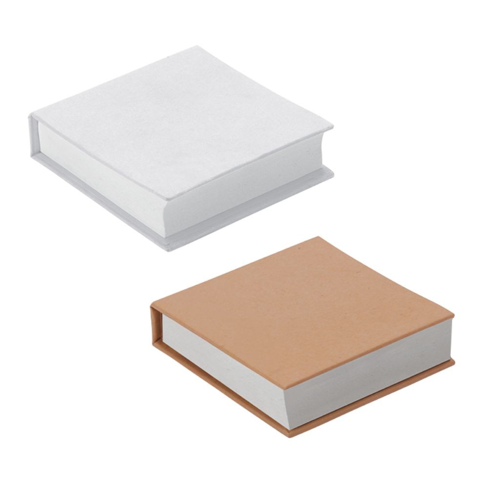 200 fogli incollati sul retro. Carta bianca 70gr. Custodia in eco paper. Confezione in polybag. Colori: avana, bianco. Dimensioni cm. 7,5×7,5 Imballo: 200xcolore