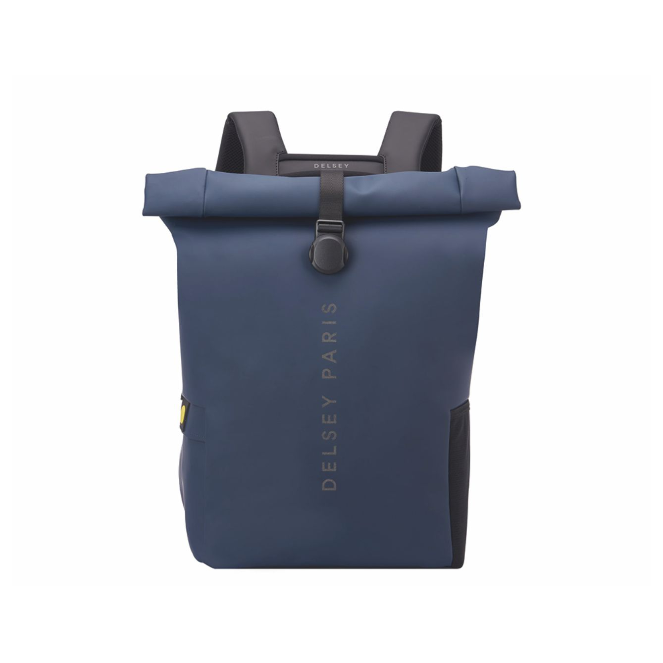 Zaino viaggio avvolgibile, realizzato con materiali ricicliati, protezione del PC, sistema di protezione RFID, compatibile con il sistema trolley. In PU riciclato. Dimensioni: cm 46x40x14 – 26 Litri