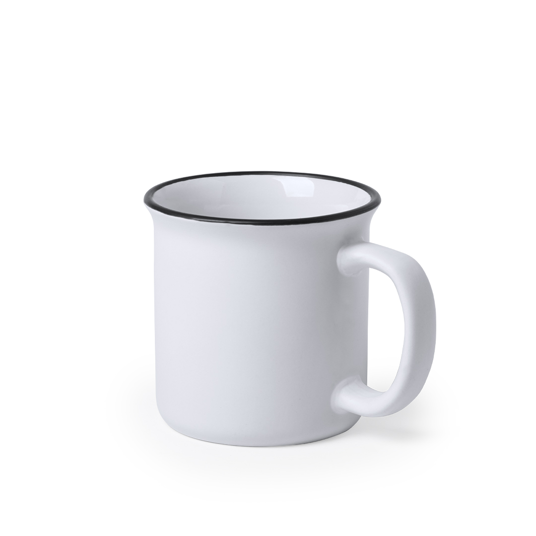 Tazza in ceramica da 300 ml con design vintage. In un sobrio design bicolore, con anello sul bordo. Presentata singolarmente in una scatola.Manuale di istruzioni disponibile in spagnolo e inglese.
