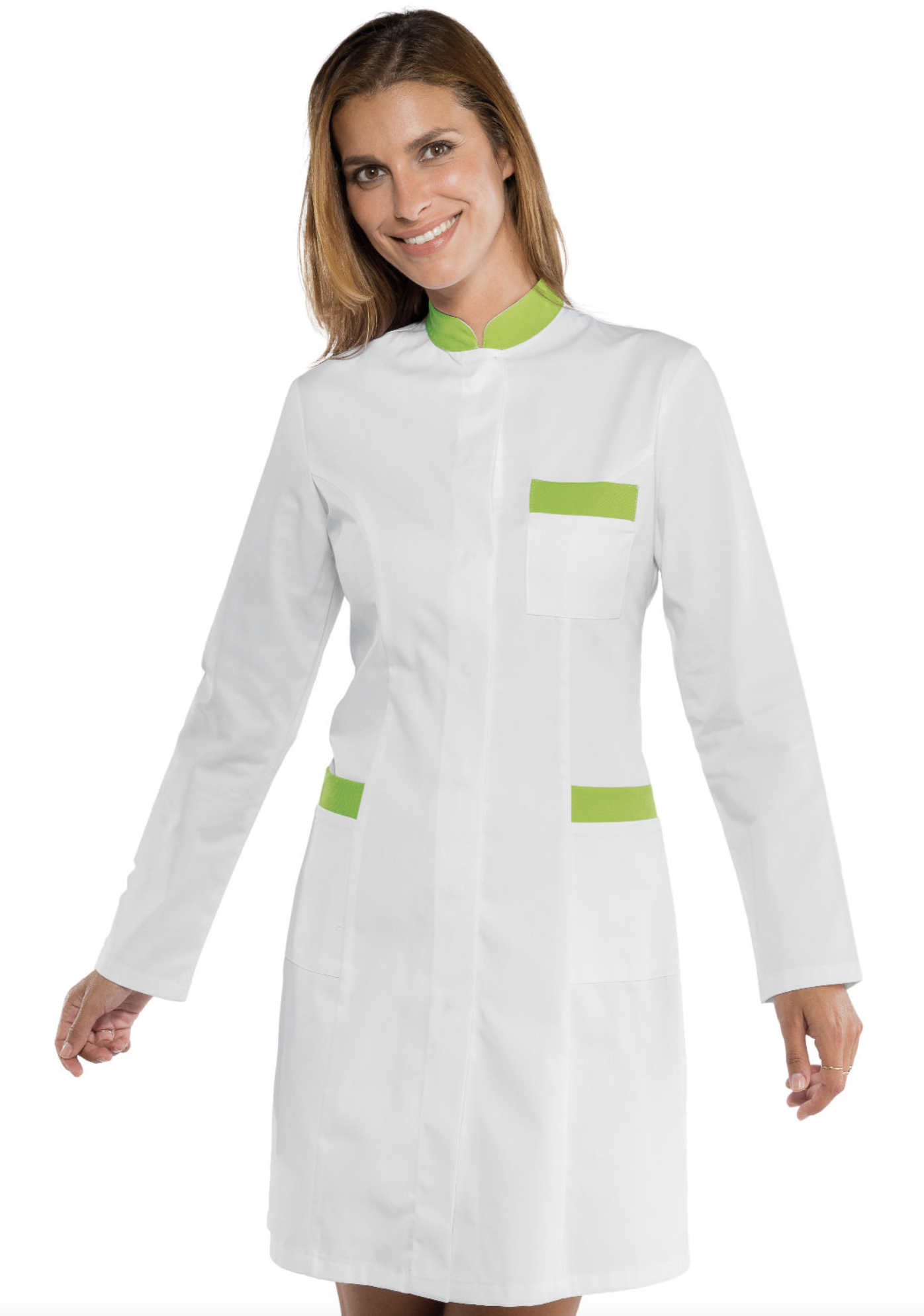 Camice uomo lungo 100 cm a manica lunga bianco. Settore medicale, estetico, sanitario, ospedaliero, alimentare e industria. Ottima divisa da lavoro per medico, infermiere, farmacista. Chiusura con cerniera e tasche e taschino al petto.