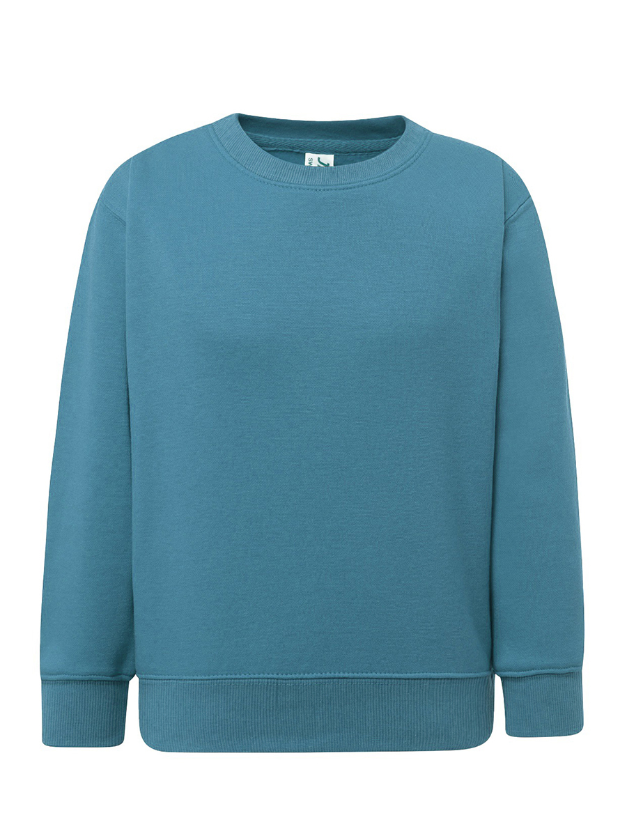 Felpa bambino; Doppia cucitura su collo, maniche e girovita; Costina 1×1 con lycra su polsini e girovita