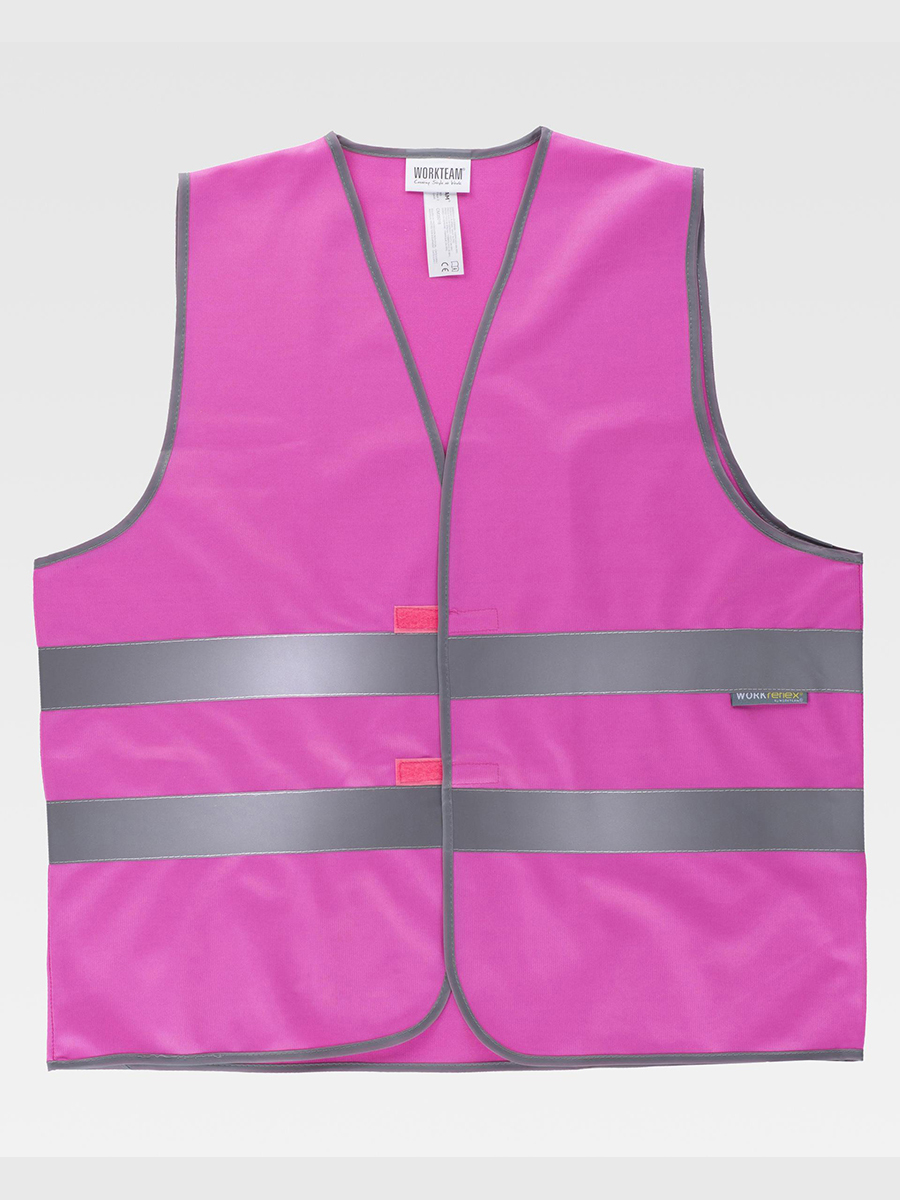 Gilet alta visibilit? con chiusura in velcro adattabile scollo a V; Due bande riflettenti; Certificazione: EN 17353 TIPO B 3