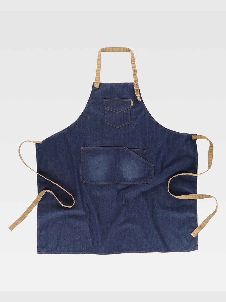 Grembiule con pettorina Cinturino collo regolabile con bottone; Una tasca sul petto e tre tasche centrali
