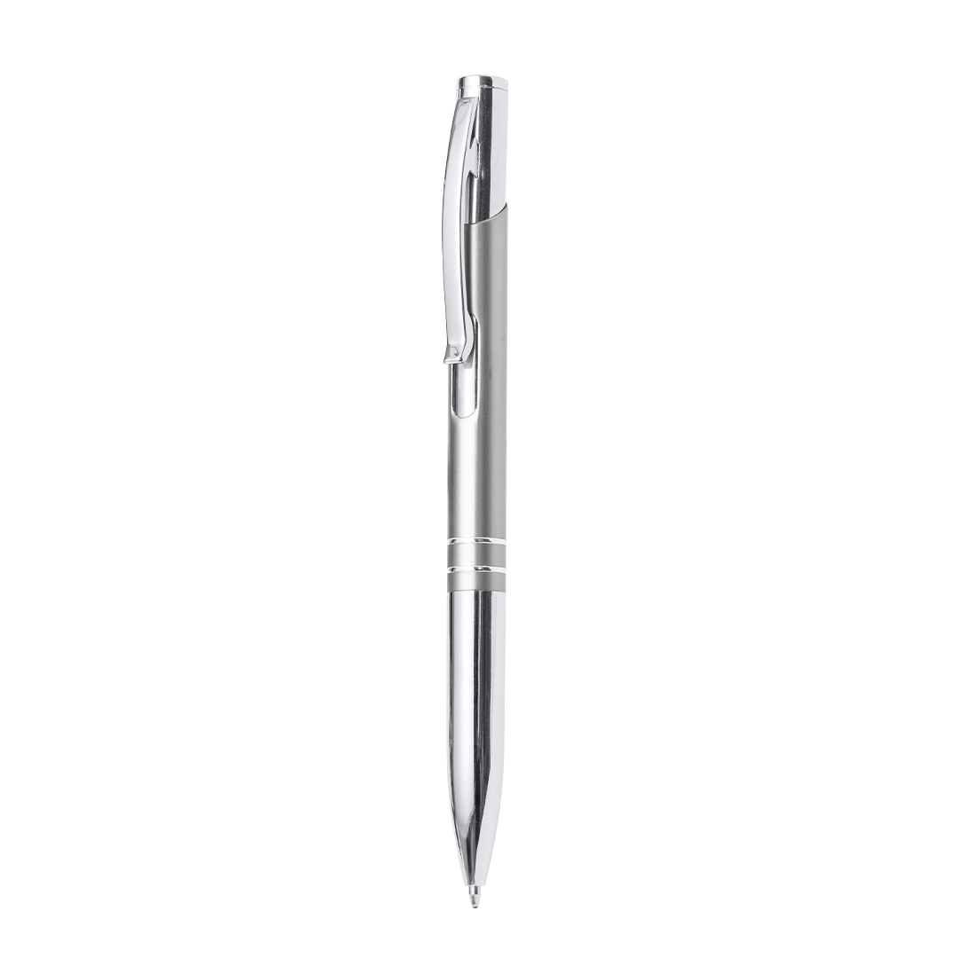 Originale penna con meccanismo a pulsante in un elegante design bicolore. Fusto in alluminio fustellato con finitura liscia in diversi colori. Clip, anelli e punta originali in argento. Inchiostro blu.