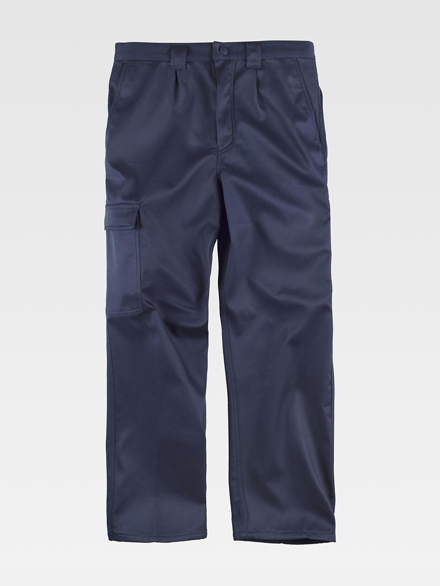 Pantalone fondo dritto, multitasche con rifiniture resistenti ai liquidi; Fodera interna in pile. Elastico in vita con passanti; chiusura con bottoni e patta con cerniera; Due tasche aperte oblique sui lati, una tasca laterale con patta e chiusura in velcro; Doppia tasca porta attrezzi; due tasche con patta e chiusura in velcro