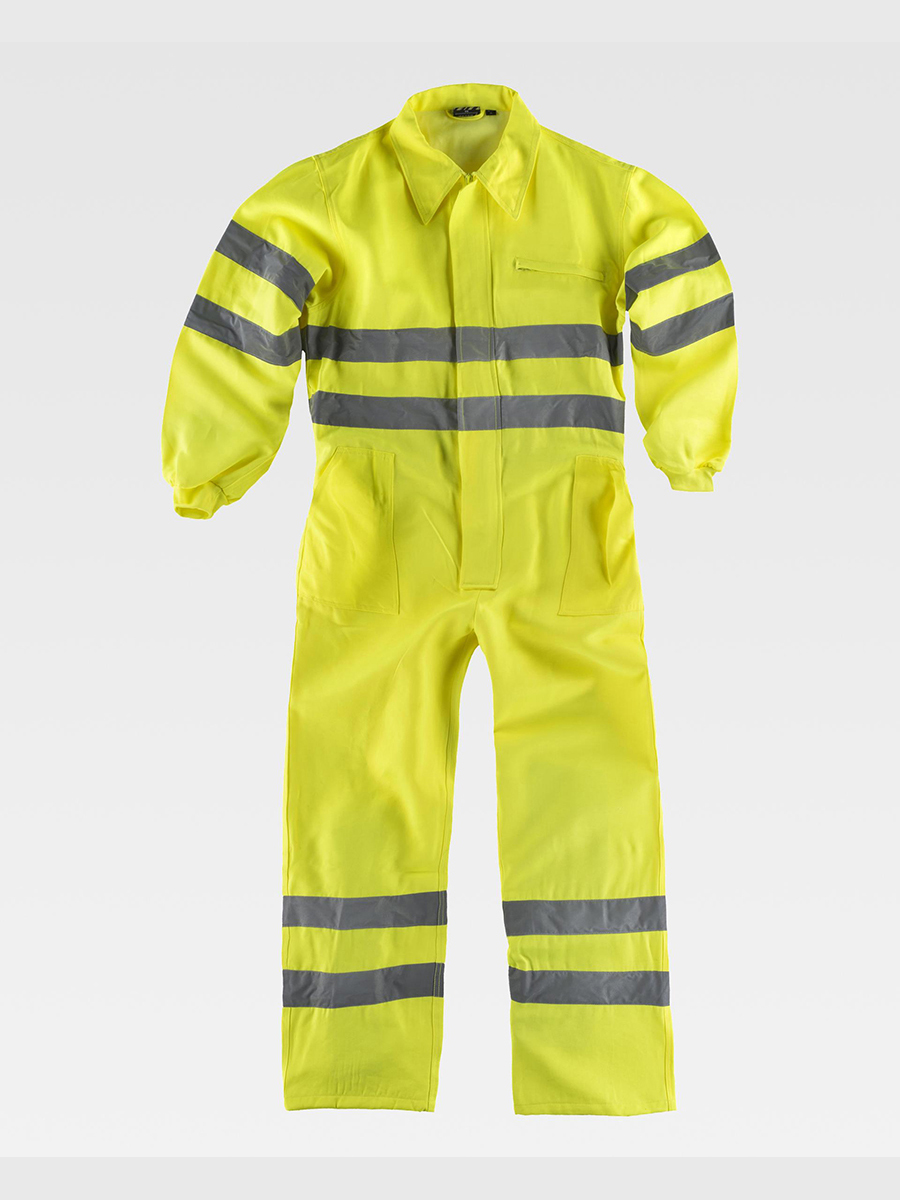 Tuta certificata alta visibilit? cerniera nascosta con patta in velcro; Collo a camicia e polsi elastici; Una tasca sul petto con cerniera di nylon; Due tasche laterali con apertura obliqua; Una tasca posterioreElastico sulla schiena; Bande riflettenti su petto, spalla, maniche e gambe; Certificazione: EN ISO 20471:2013 CLASSE 3