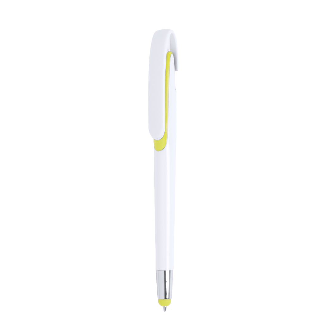 Penna touch con meccanismo a pulsante, fusto con finitura lucida bianca e accessori in un’ampia gamma di colori vivaci. Con maxi clip e inchiostro blu.